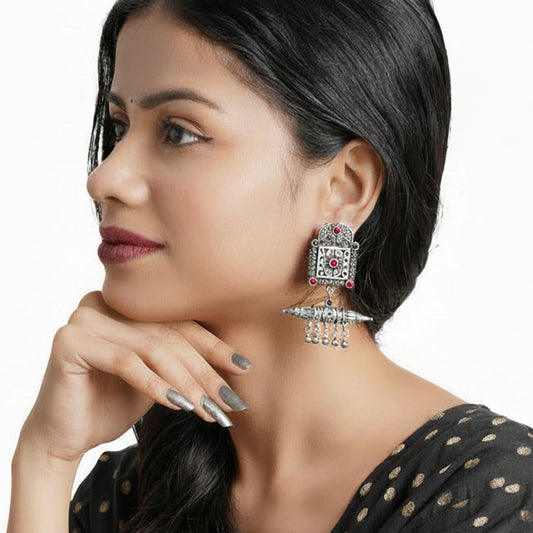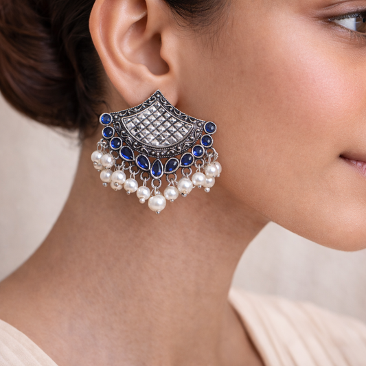 Regal silver pearl oxidised chain neckpiece (Silver)