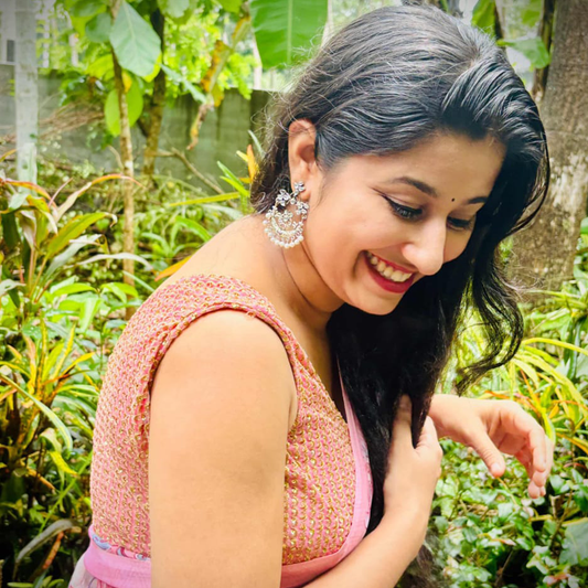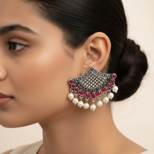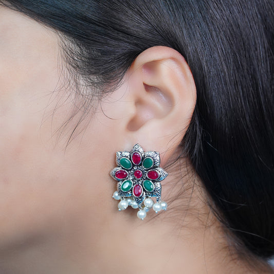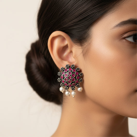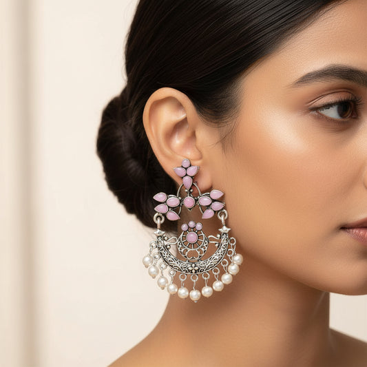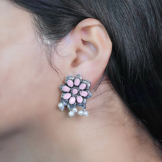Wonderful wildflower oxidised stud earrings (Baby Pink)