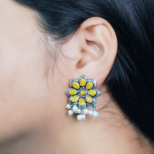 Wonderful wildflower oxidised stud earrings (Yellow)