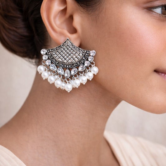 Regal silver pearl oxidised chain neckpiece (Silver)