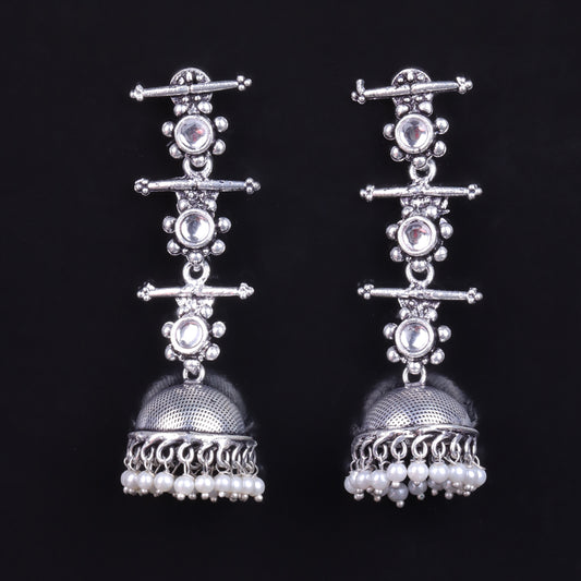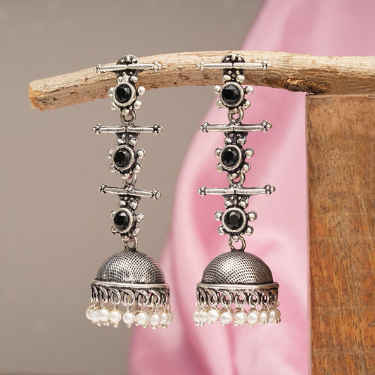 Royal Triple Bell Layered Jhumka Earring (Black)