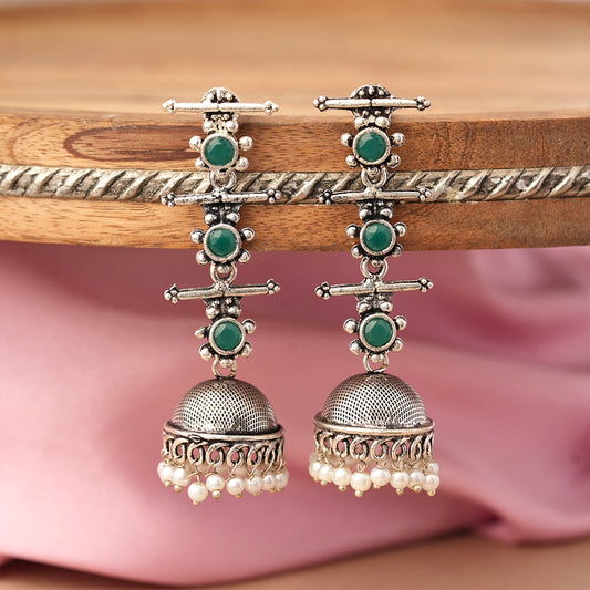Royal Triple Bell Layered Jhumka Earring (Green)