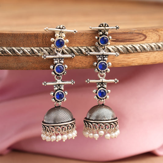 Royal Triple Bell Layered Jhumka Earring (Blue)