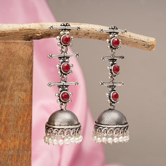 Royal Triple Bell Layered Jhumka Earring (Red)