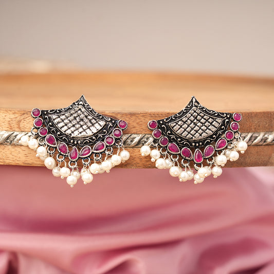 Royal Triple Bell Layered Jhumka Earring (Dark Maroon)