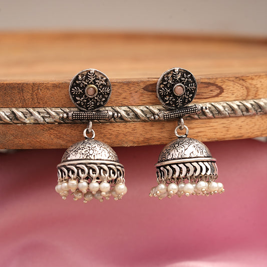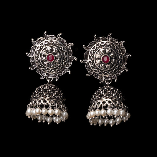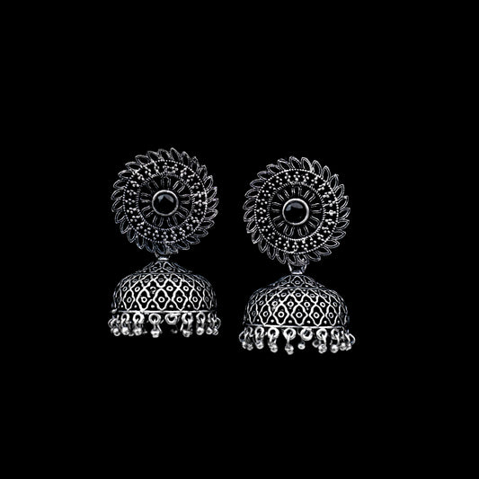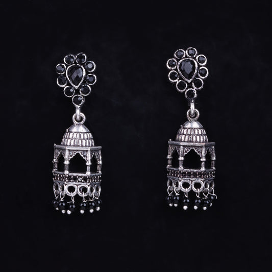 Floral Jharokha jhumki earrings (Black)