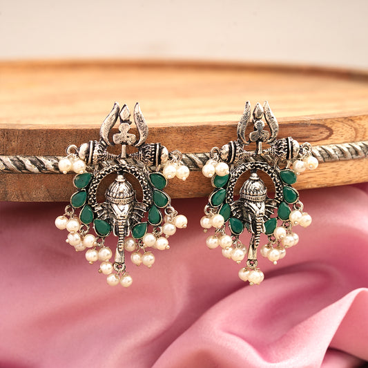 Sacred Sparkle pearl dangler earrings (Green)
