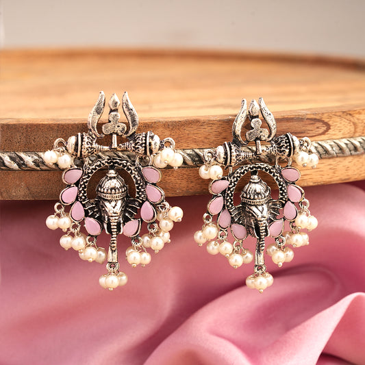 Sacred Sparkle pearl dangler earrings (Baby Pink)