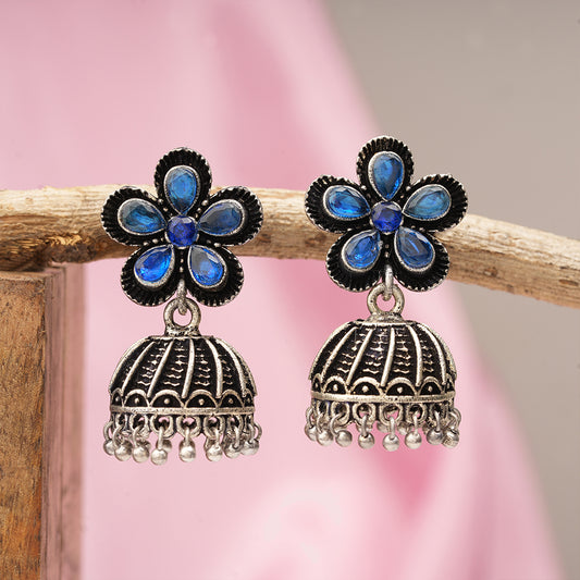 Periwinkle stone studded jhumki earrings (Blue)