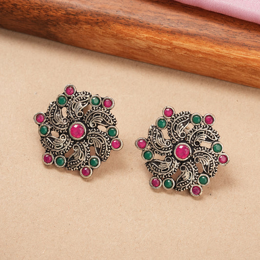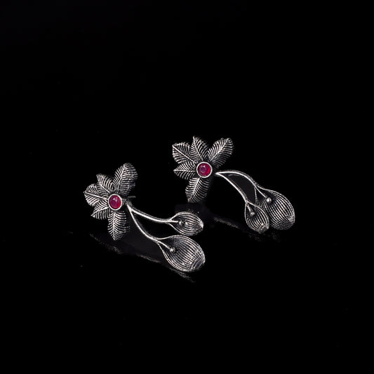 Bud Flower oxidized stud earrings (Red)