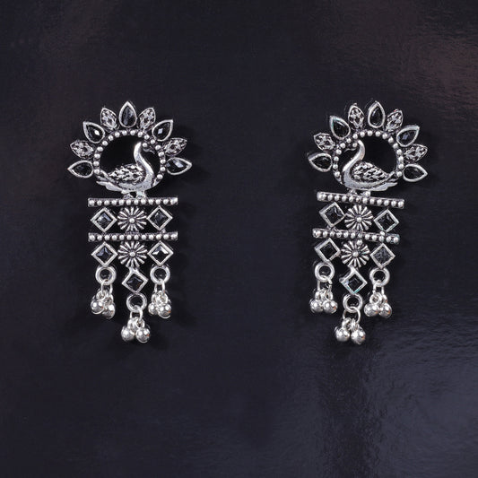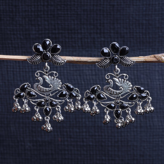 Pretty Peacock stone studded jhumka earring (Black)