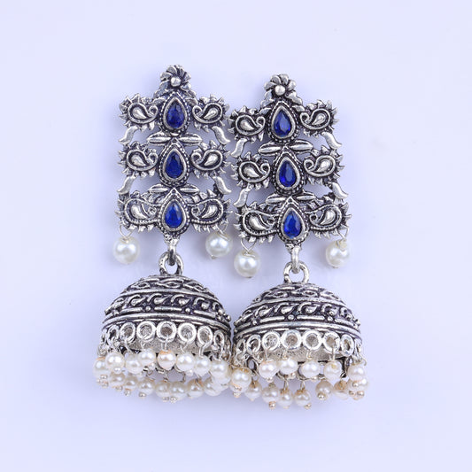 Sitara stone studded jhumki earrings (Blue)