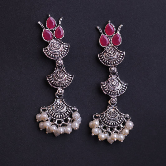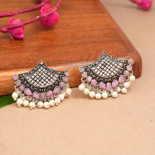Charming Chaandbali pearl stud earrings (Red)