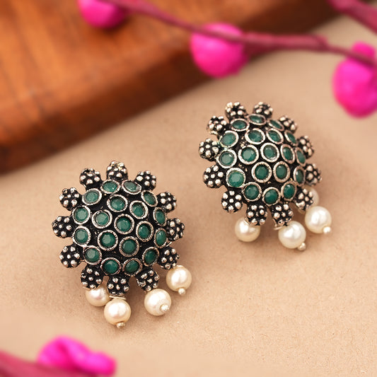 Stone Dome stud earrings (Green)