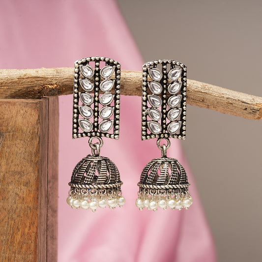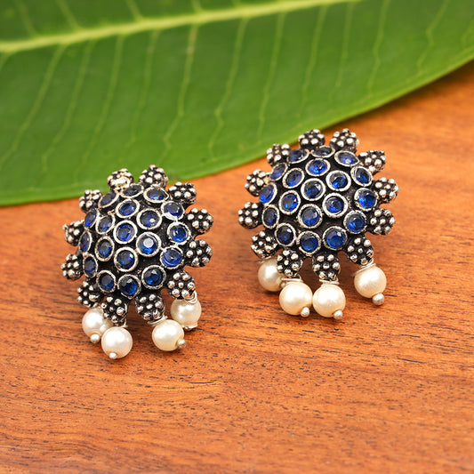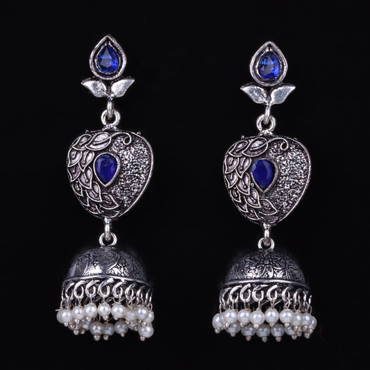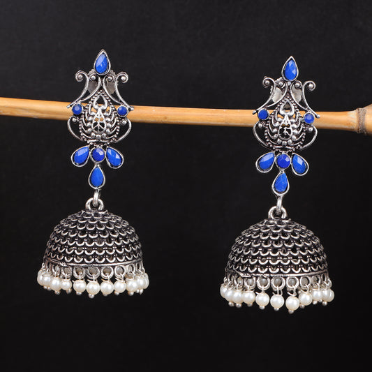 Tusks and twinkle stone studded jhumka earrings (Blue)