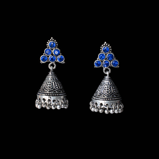 Periwinkle stone studded jhumki earrings (Blue)