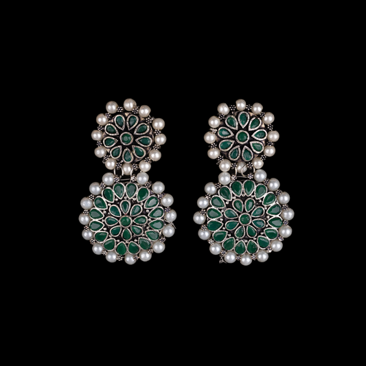 Double boho floral dangler earring (Green)