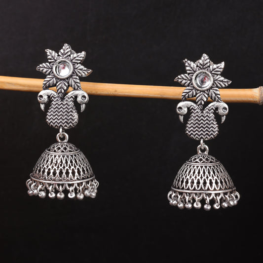 Regal leaffall stone studded jhumki earrings (White)