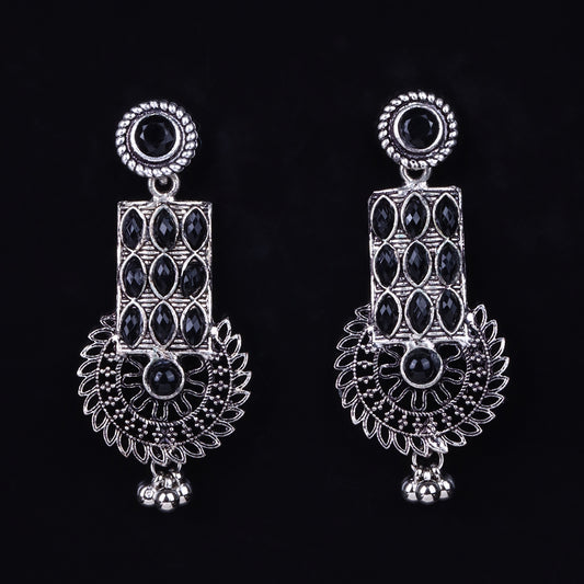 Mystic Chakra stone studded dangler earring (Black)