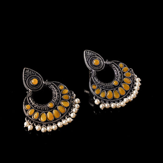Charming Chaandbali pearl stud earrings (Yellow)
