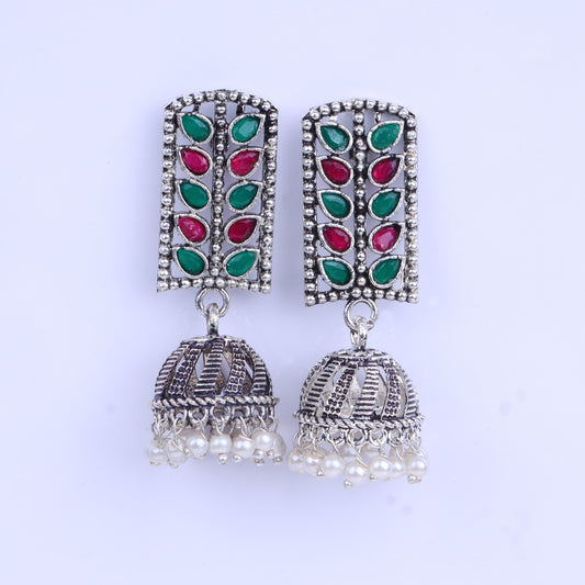 Regal leaffall stone studded jhumki earrings (Multicolored)