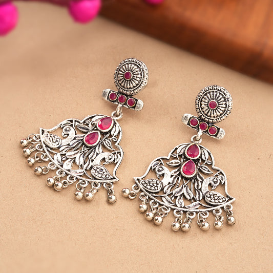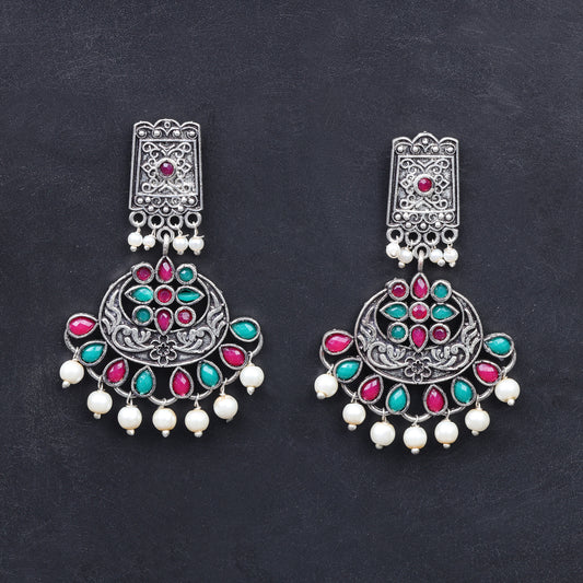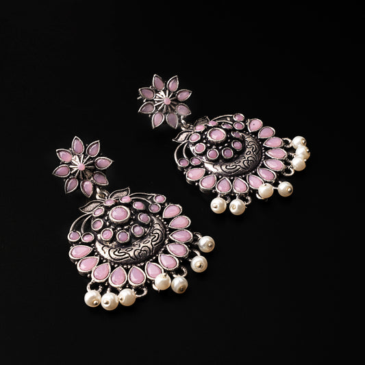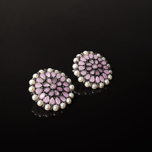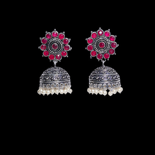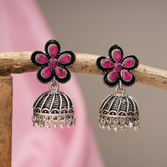 Blush Petals stone studded jhumki earrings (Multicolored)