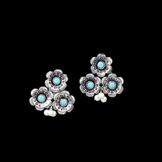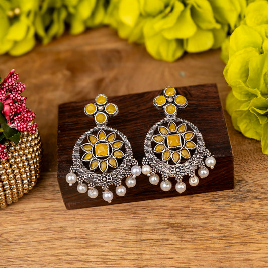 Flower Rangoli Pearl dangler earrings (Yellow)