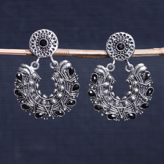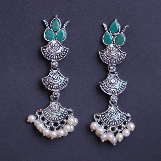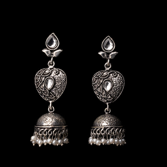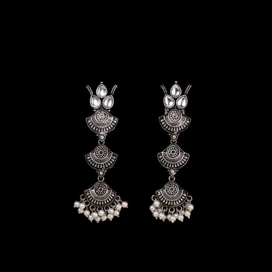 Royal Triple Bell Layered Jhumka Earring (Black)