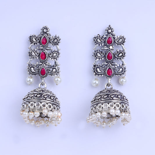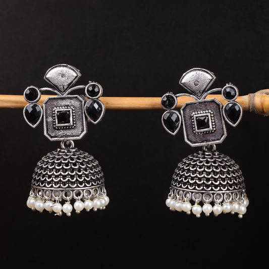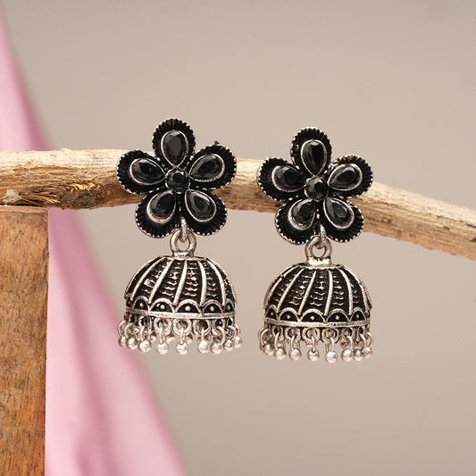 Royal Triple Bell Layered Jhumka Earring (Black)
