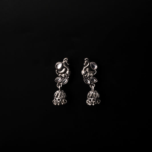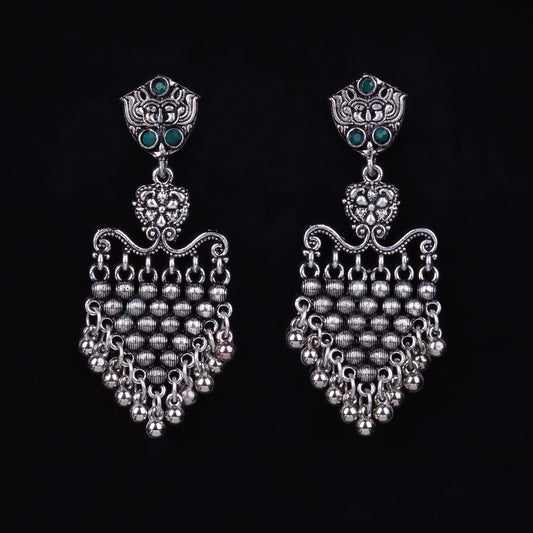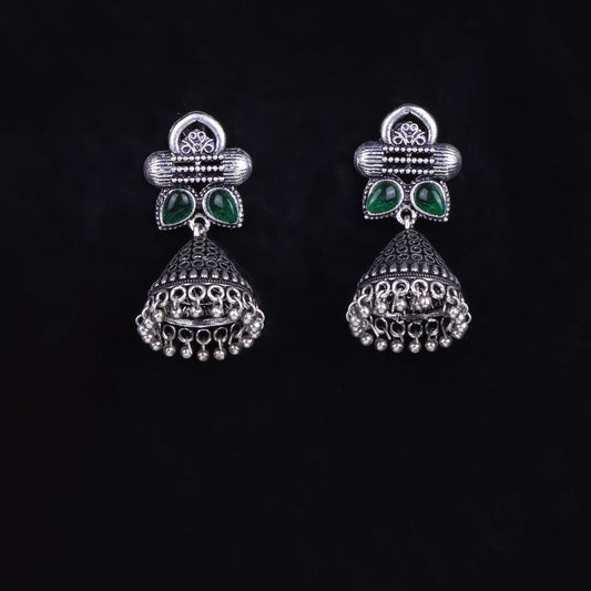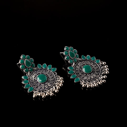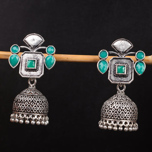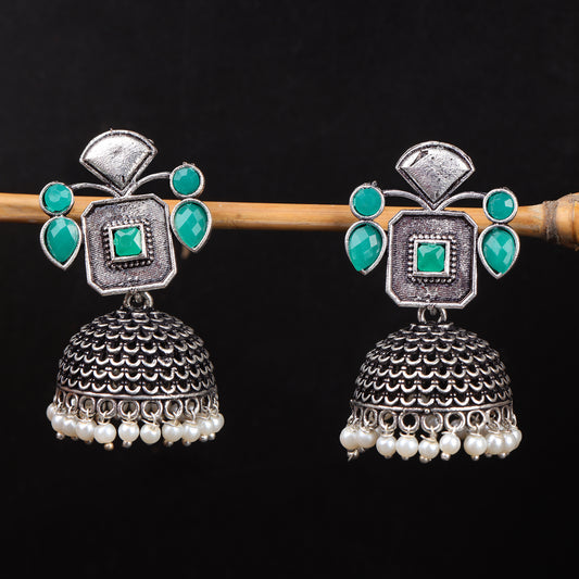 Green Stone Studded Statement Earrings With Hanging Jhumka Embellished With Baby Pearls