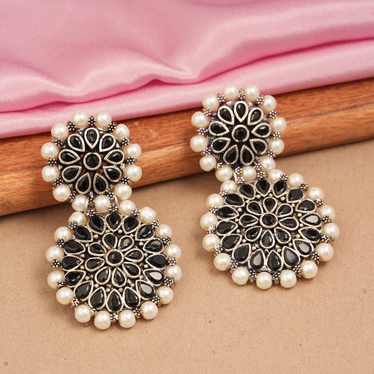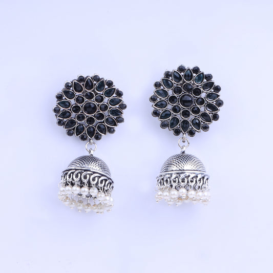 Stone studded floral jhumki earrings (Black)