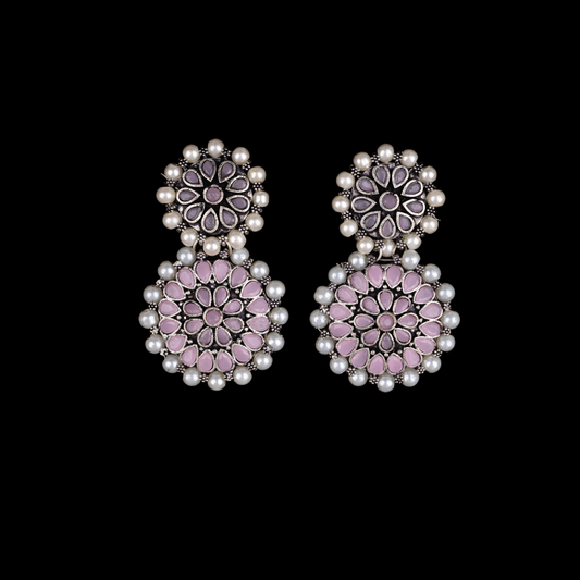 Double boho floral dangler earring (Baby Pink)
