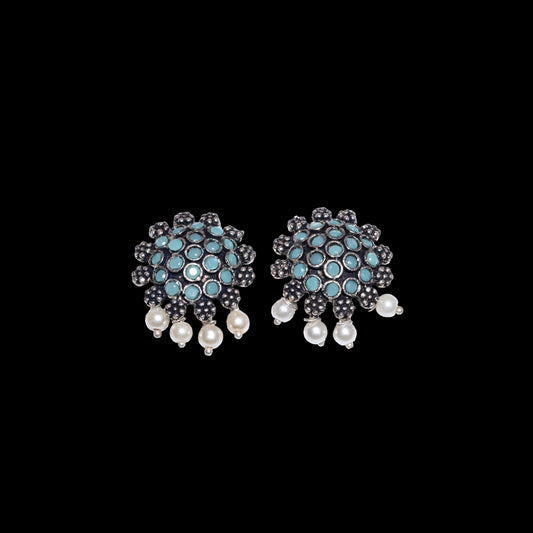 Periwinkle stone studded jhumki earrings (Blue)