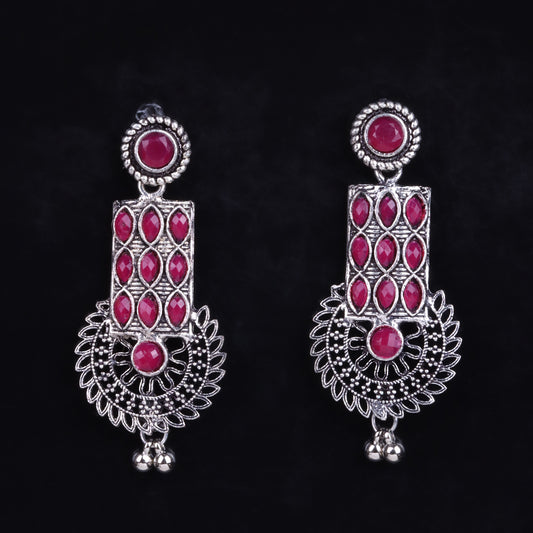 Mystic Chakra stone studded dangler earring (Red)