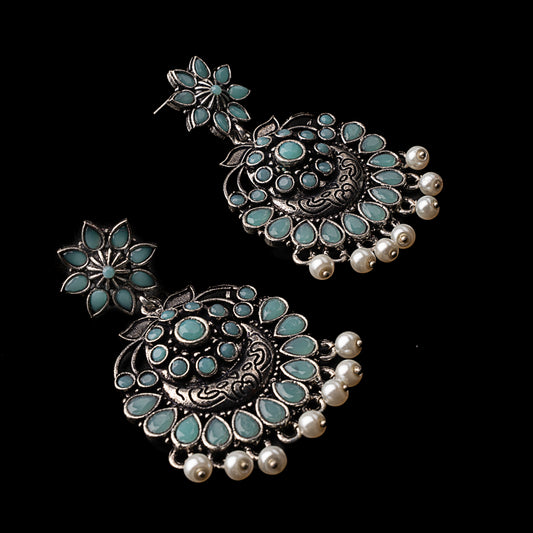 Pearl Cacade stone studded dangler earrings (Blue)