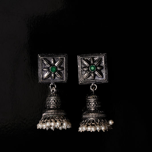 Petal Frame hanging Jhumki Earrings (Green)