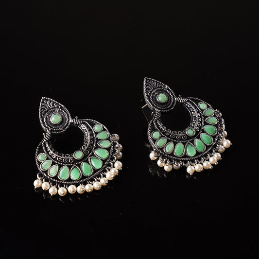 Charming Chaandbali pearl stud earrings (Pista)