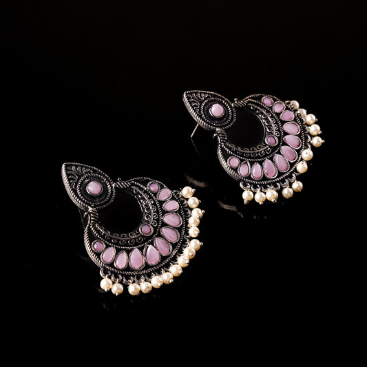 Charming Chaandbali pearl stud earrings (Baby Pink)