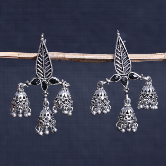 Tri-Leaf Jhumki earrings (Black)