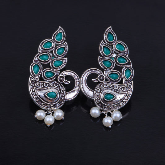 Bud Flower oxidized stud earrings (Green)