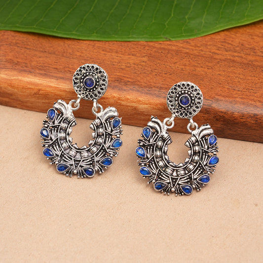 Pretty Peacock stone studded jhumka earring (Yellow)