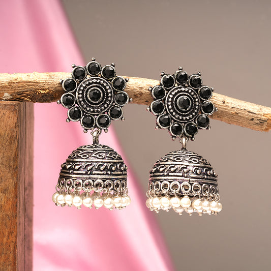 Royal Triple Bell Layered Jhumka Earring (Black)