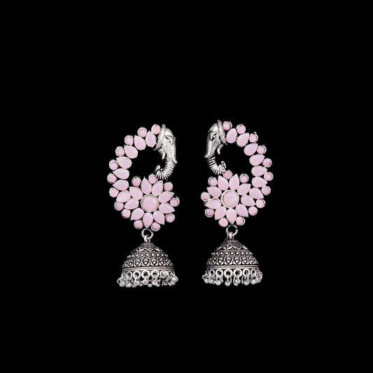 Tusks and twinkle stone studded jhumka earrings (Baby Pink)