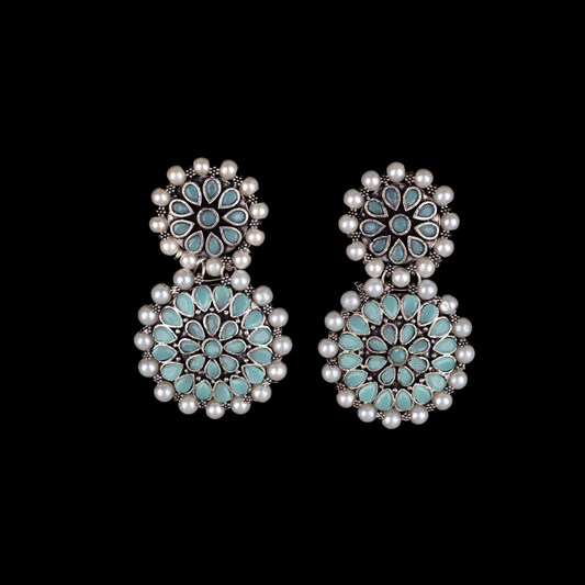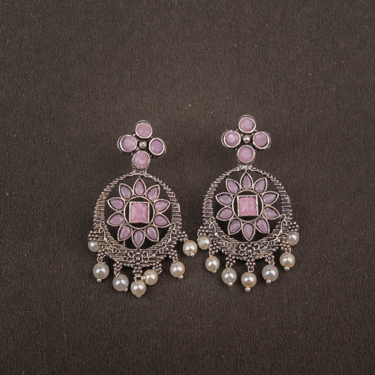 Flower Rangoli Pearl dangler earrings (Baby Pink)