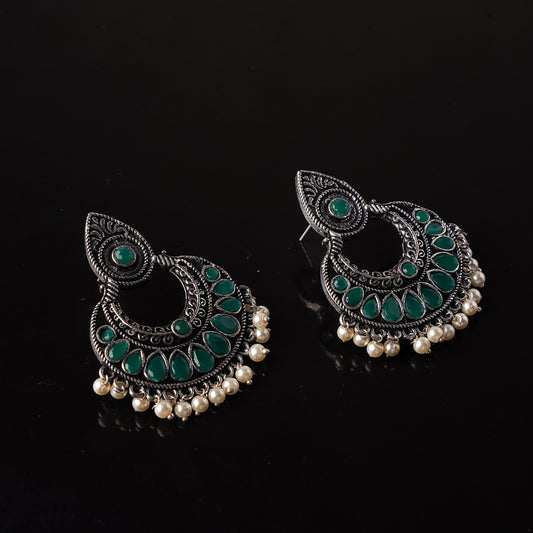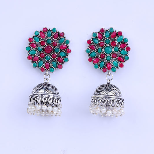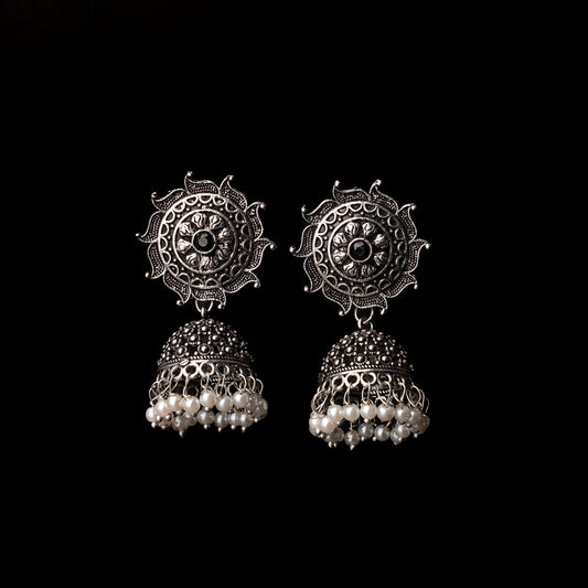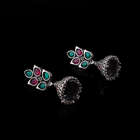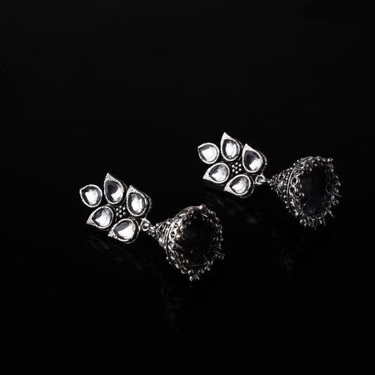 Royal Triple Bell Layered Jhumka Earring (Black)