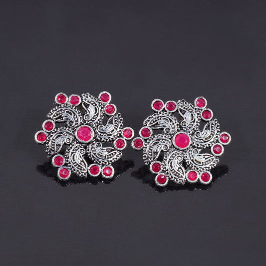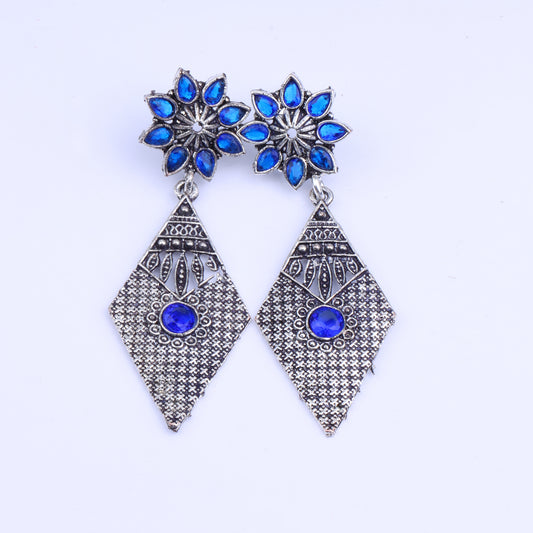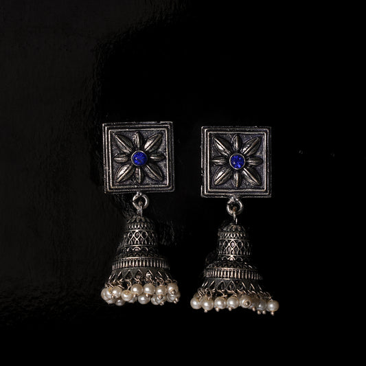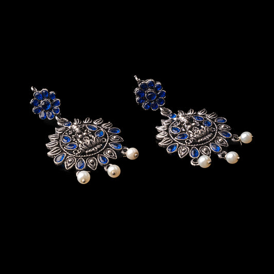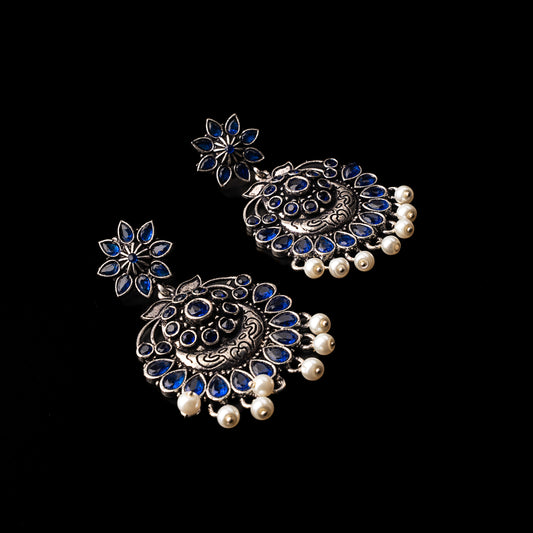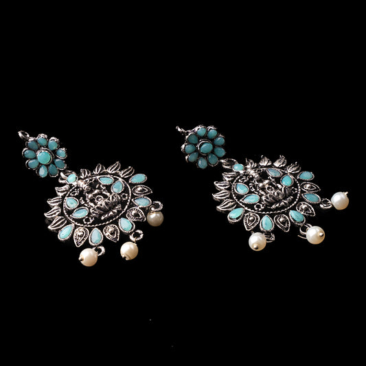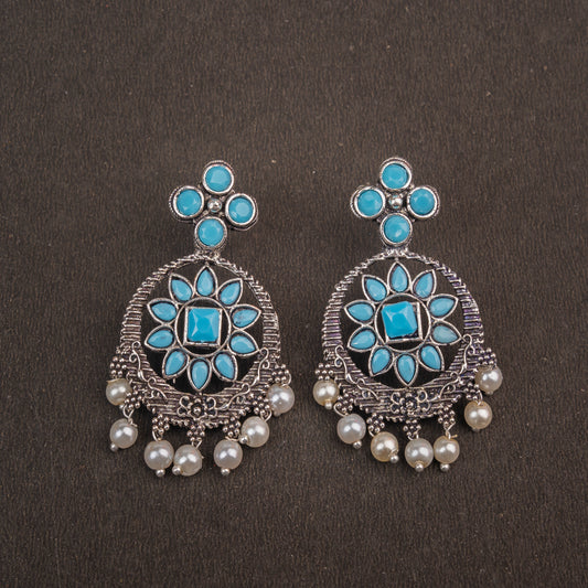 Flower Rangoli Pearl dangler earrings (Sky Blue)