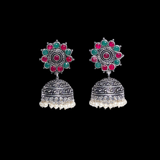 Kamalika stone studded jhumka earrings (Green)