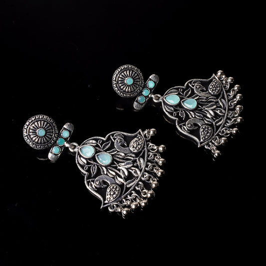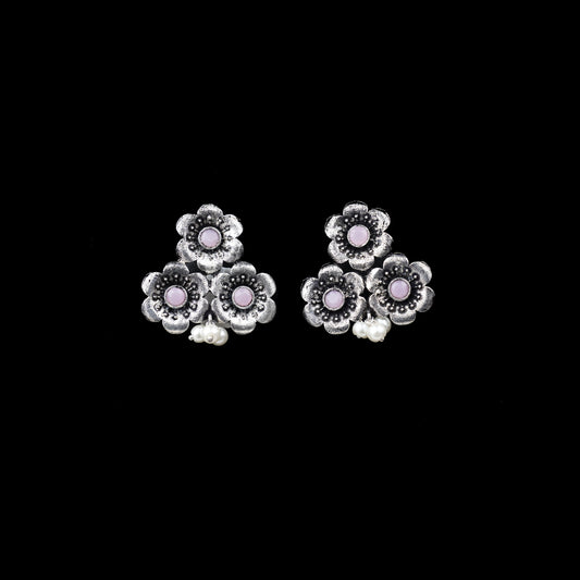 Wonderful wildflower oxidised stud earrings (Sky Blue)