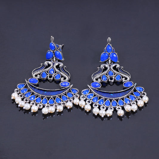 Neel swirls pearl dangler earring (Blue)