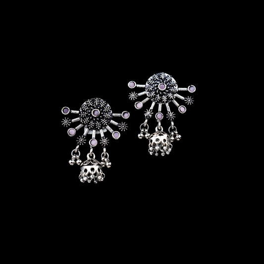 Periwinkle stone studded jhumki earrings (Blue)